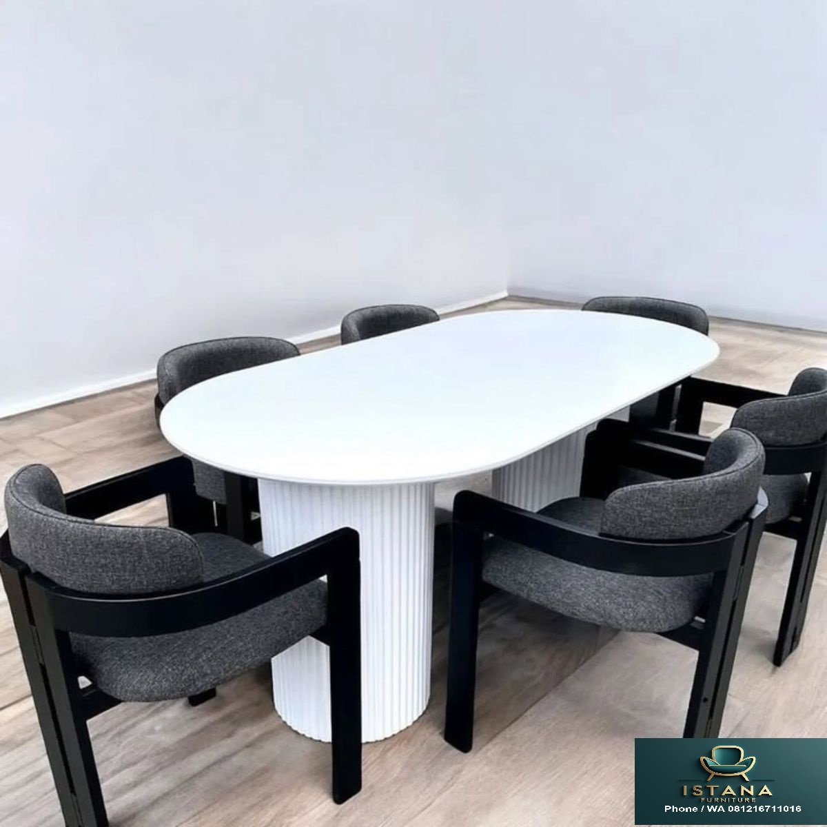 Nikmati pengalaman makan yang lebih elegan dengan Set Meja Makan Modern 6 Kursi Warna Hitam. Set ini dirancang dengan perpaduan sempurna antara gaya modern dan fungsi praktis, menampilkan meja berbentuk oval dengan permukaan yang halus dan bersih, serta enam kursi yang nyaman dengan sandaran ergonomis. Meja dan kursi ini tidak hanya menawarkan keindahan visual, tetapi juga kekokohan dan ketahanan yang tak tertandingi. Set ini sangat cocok untuk Anda yang menginginkan ruang makan yang mewah dan nyaman untuk keluarga dan tamu. Dengan sentuhan akhir yang halus dan detail yang elegan.