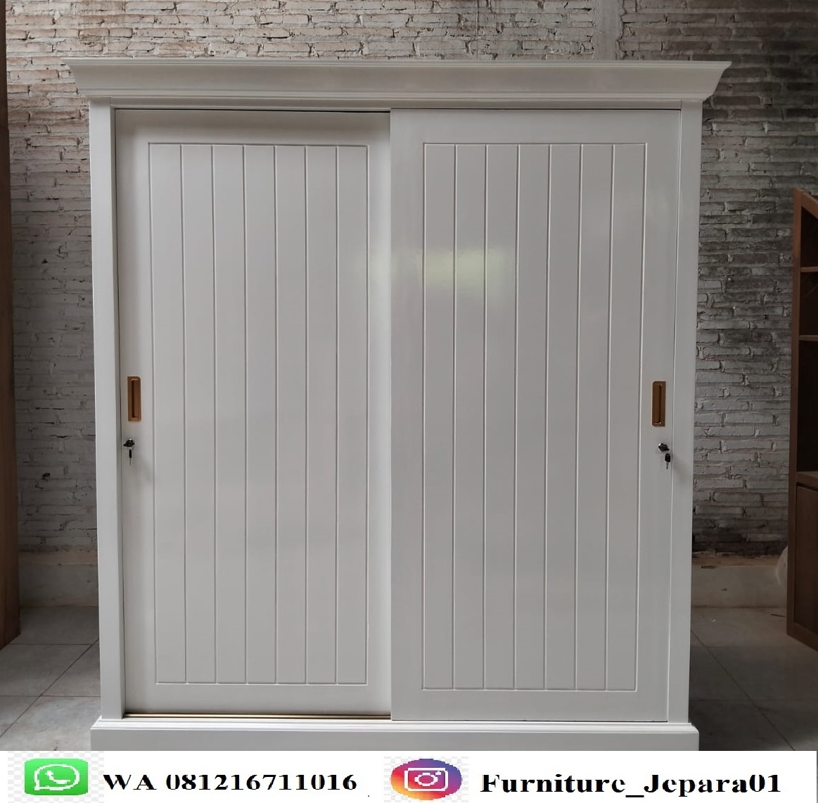 Jual Lemari Kayu Jati Sliding 2 Pintu Geser Motif Salur