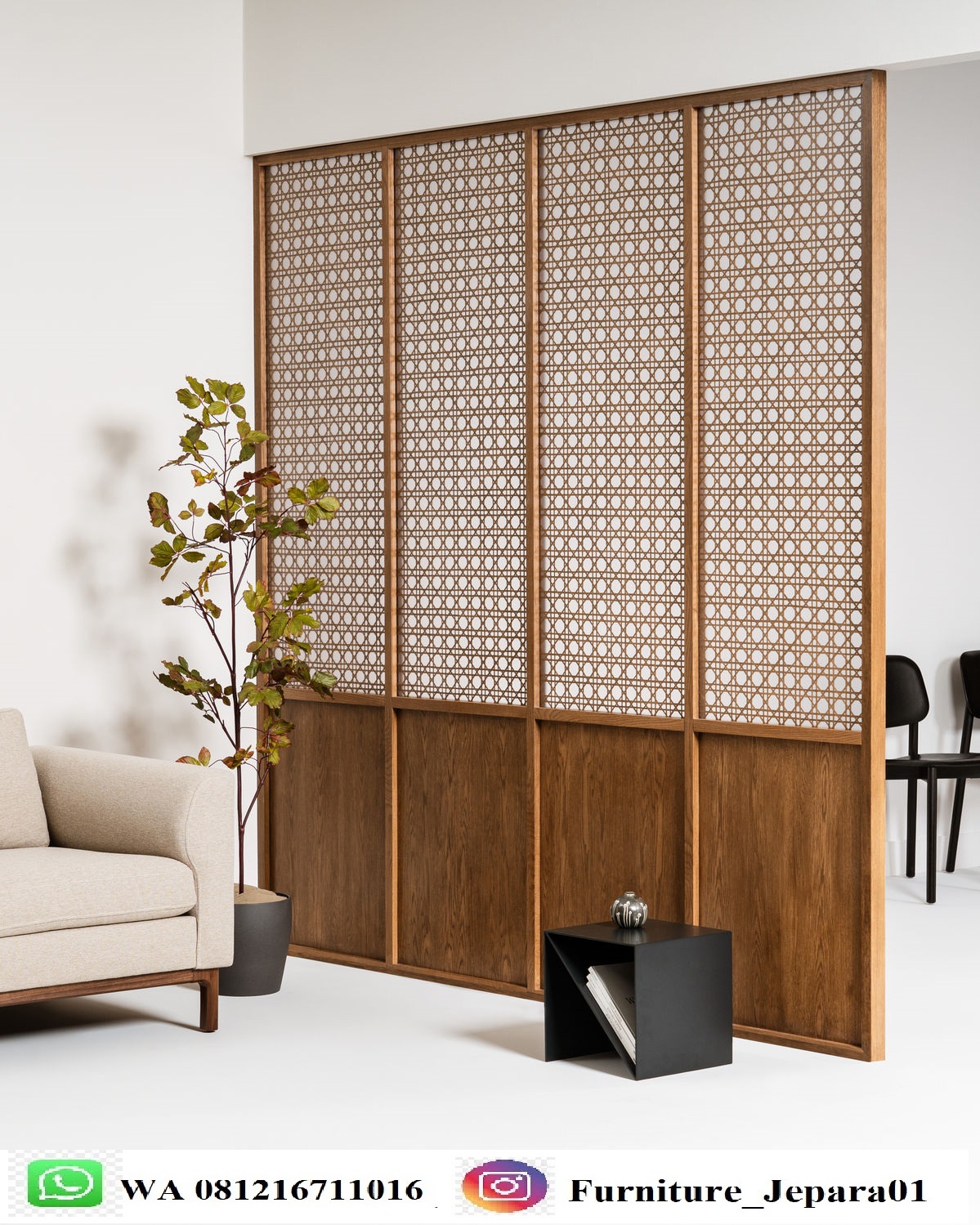 Hadirkan kesan alami dan modern pada ruang tamu Anda dengan Partisi Sekat Ruang Tamu Minimalis berbahan jati dan rotan. Partisi ini tidak hanya berfungsi sebagai pembatas ruangan, tetapi juga menjadi elemen dekoratif yang menambah kehangatan dan karakter dalam interior. Desain minimalis dengan sentuhan rotan memberikan nuansa tropis dan alami, cocok untuk Anda yang menginginkan suasana yang tenang dan nyaman di rumah. Kayu jati yang kokoh memastikan daya tahan produk ini, sehingga Anda dapat menggunakannya dalam jangka panjang.