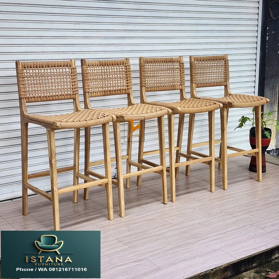 Ingin mencari Kursi Bar Cafe Harga Murah? Istana Furniture solusinya. Kursi bar ini menggunakan bahan kayu jati solid dengan kualitas produksi terbaik dan dikerjakan secara profesional yang kami utamakan. Selain kayu jati, bahan baku lainnya adalah rotan alami yang digunakan untuk melapisi tempat duduk dengan anyaman yang indah. Hal ini juga dipengaruhi oleh harga yang murah dengan kualitas terbaik yang kami tawarkan. Lengkapi Cafe anda dengan kursi bar kekinian serta elegan .Memiliki desain natural, sederhana namun elegan yang menambah kenyamanan waktu nongkrong Anda.