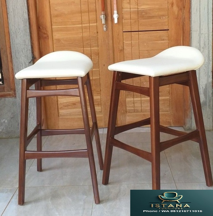 Ingin mempunyai Kursi Cafe Murah? Istana Furniture Solusinya karena kami adalah Pengrajin langsung dari Jepara. Kursi Bar Stool ini memiliki Desain yang klasik modern kaki yang tinggi dirancang untuk digunakan di konter dapur ataupun meja bar. Untuk bahan kami menggunakan bahan kayu jati perhutani yang dikerjakan oleh tukang kami yang sudah ahli di bidangnya, Selain itu dudukan melengkung dan empuk untuk kenyamanan pemakainya. Sangat cocok untuk ruang kecil karena ringan dan fungsionalitas.