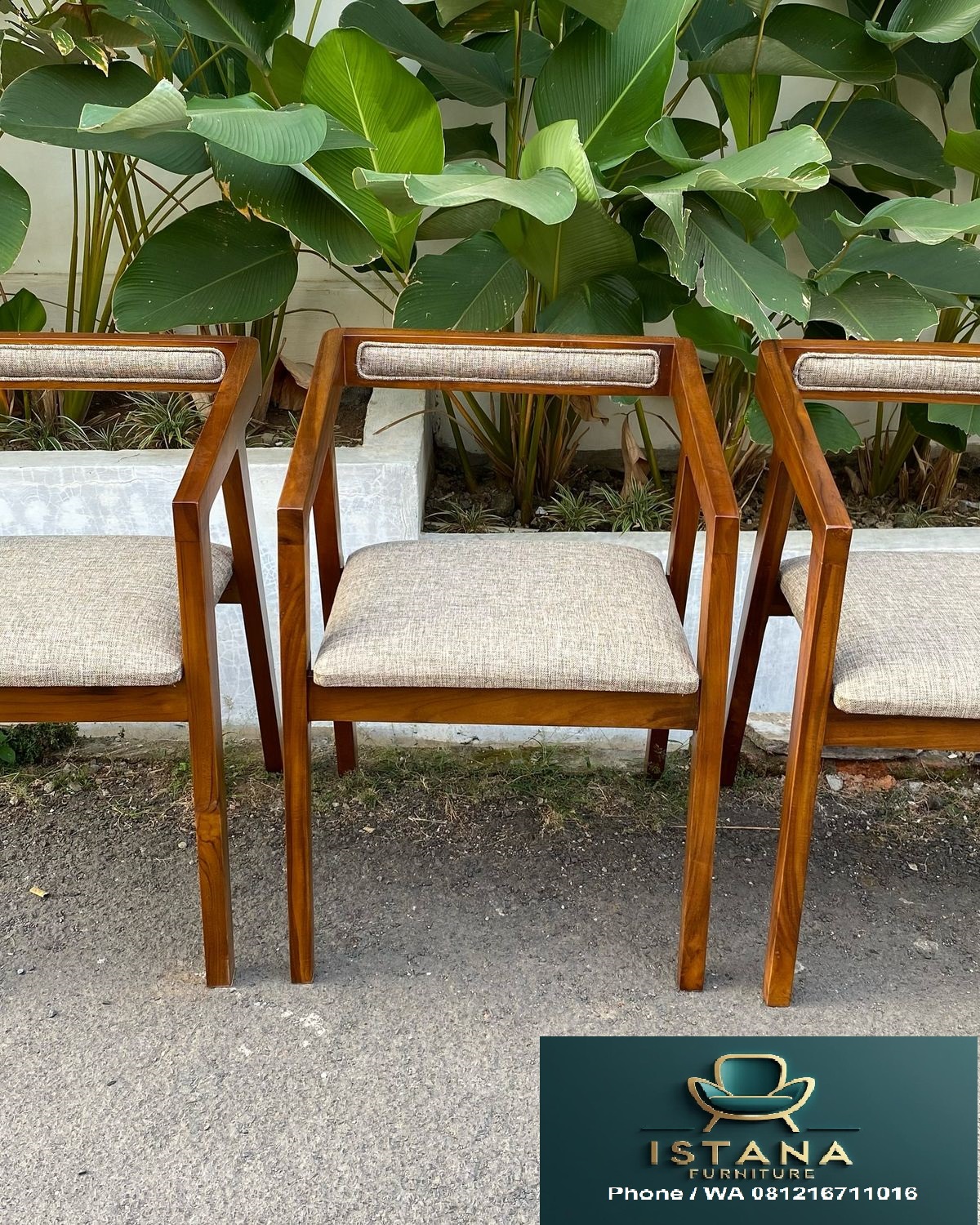 Ingin mencari Furniture Murah? Toko kami solusinya karena kami adalah Pengrajin langsung dari Jepara, Walaupun murah kami tetap menjaga kualitas produk yang anda pesan. Kursi Cafe ini Memiliki desain yang standar dan kasual sehingga cocok digunakan di berbagai ruangan seperti ruang makan,kerja,maupun teras. Untuk bahan kami menggunakan Kayu Jati Perhutani yang dikerjakan oleh Tukang kami yang sudah berpengalaman, Dudukan Jok kami memakai kain daphnie yang memberikan kenyamanan sekaligus daya tahan yang tinggi.