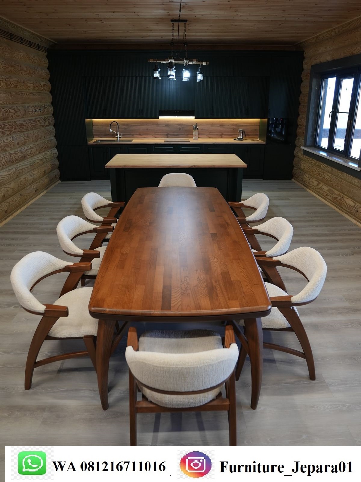 • Set Meja Makan Trembesi Kayu Solid 8 Kursi Modern Mid Century